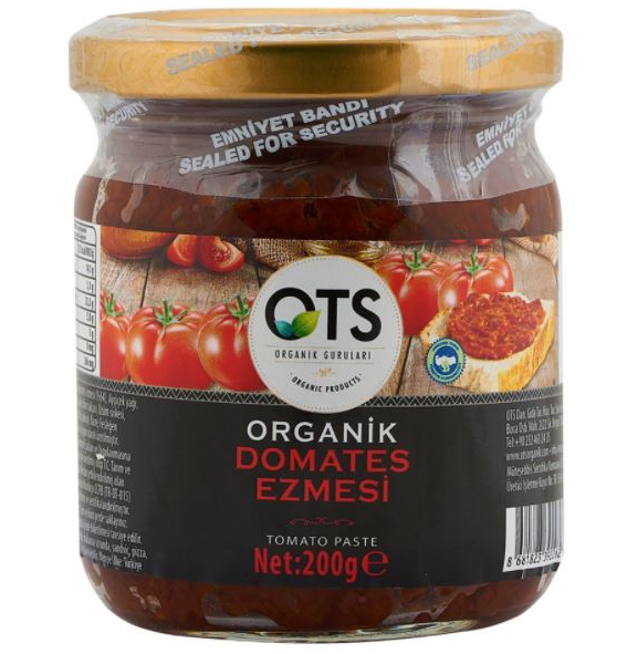 Kuru Domates ezmesi, ayçiçek yağı, domates salçası, sade biber salçası, üzüm sirkesi, nar ekşisi, kekik, mercan köşk, nane, fesleğen